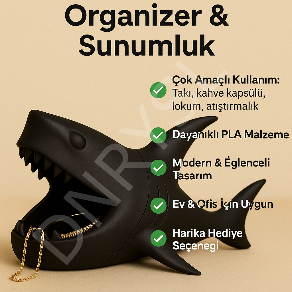 Dekoratif Köpekbalığı Tasarımlı Takı Organizer, Sunumluk, Lokumluk, Masa Üstü Düzenleyici