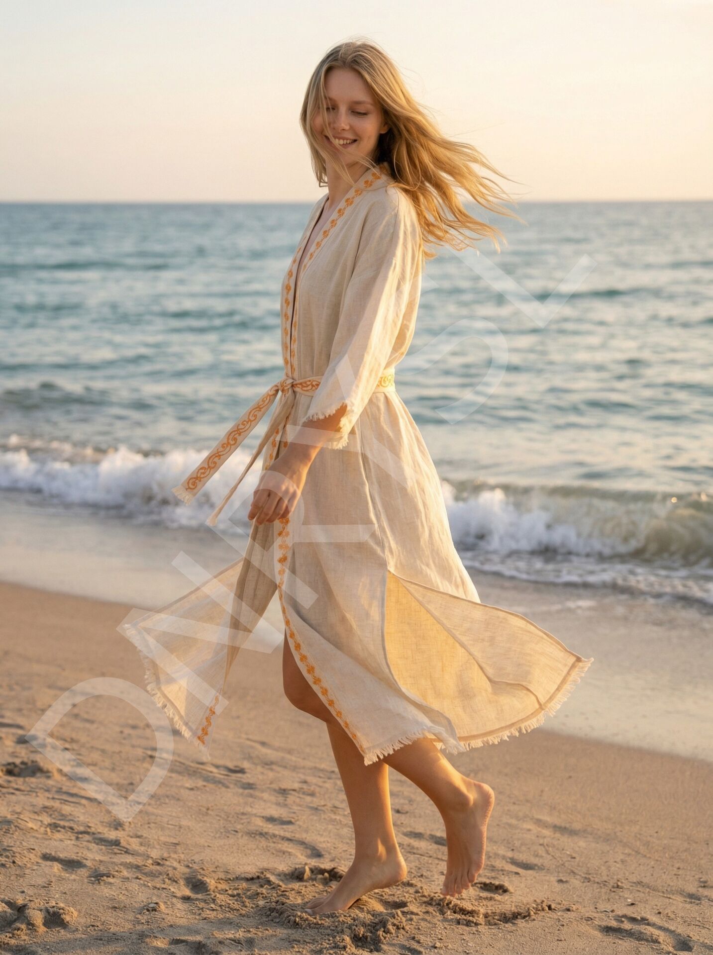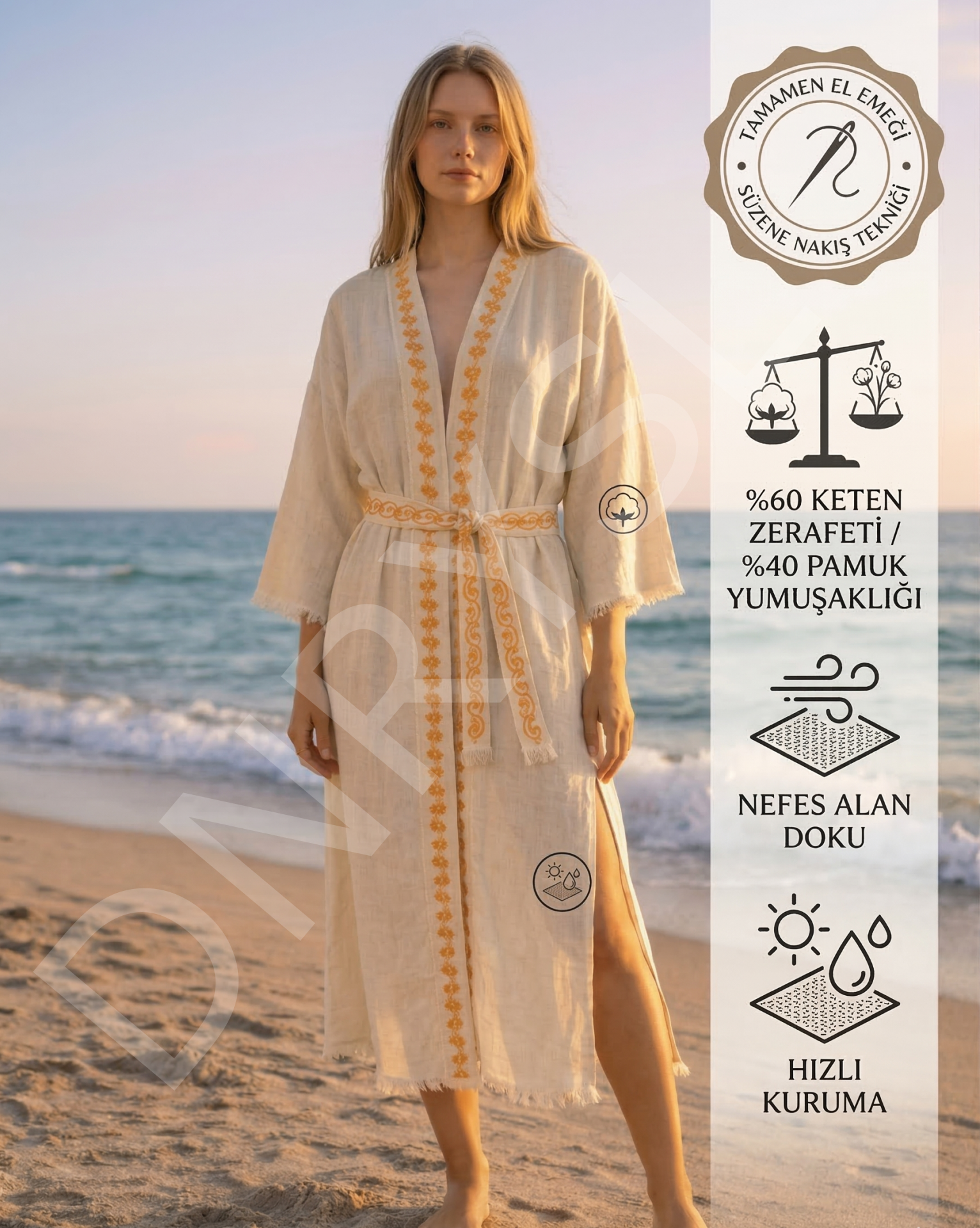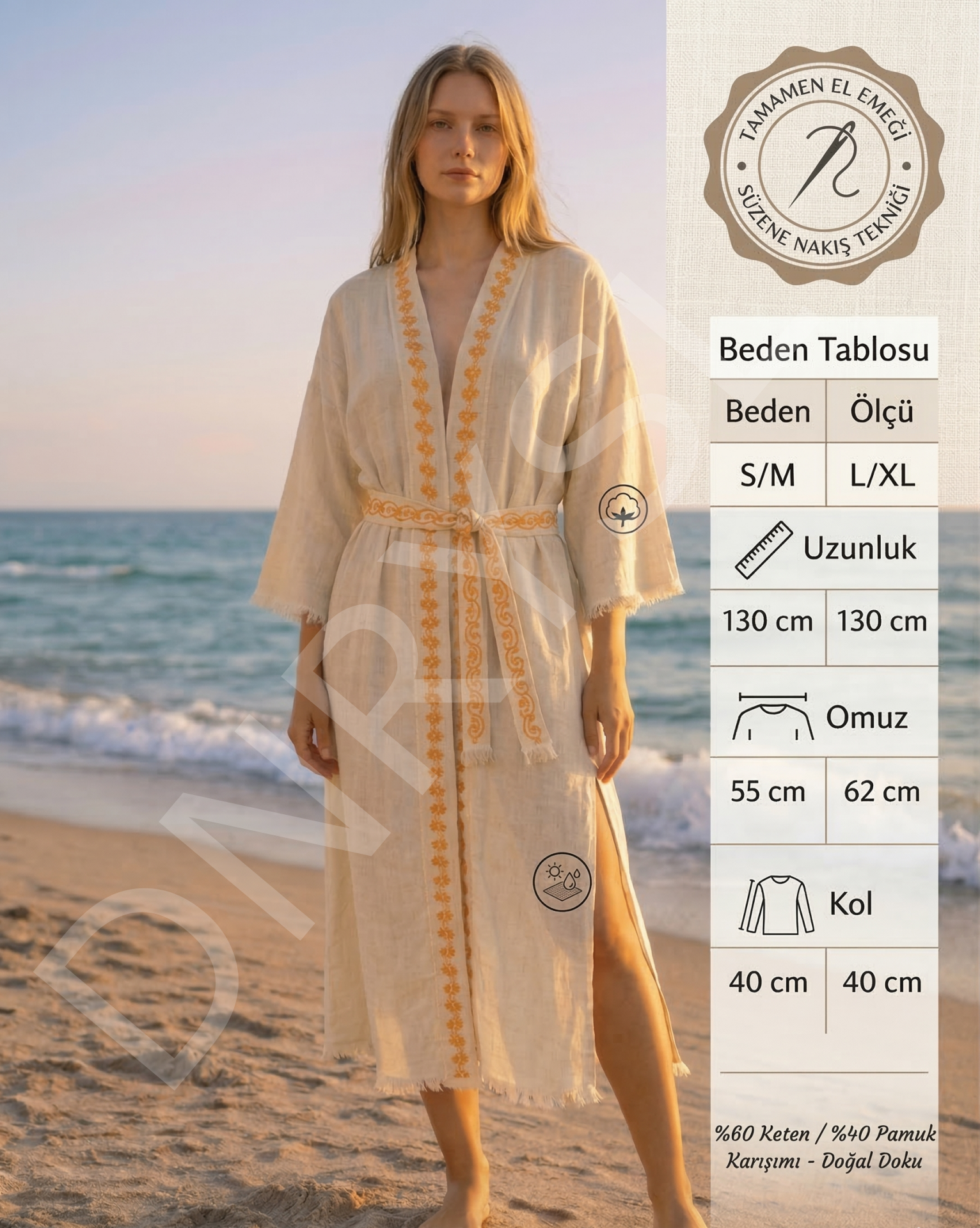 El Emeği Süzene Nakışlı Plaj Kaftanı, %60 Keten %40 Pamuk, Nefes Alan ve Hızlı Kuruyan Kumaş DNRYSLplajkaftan20000