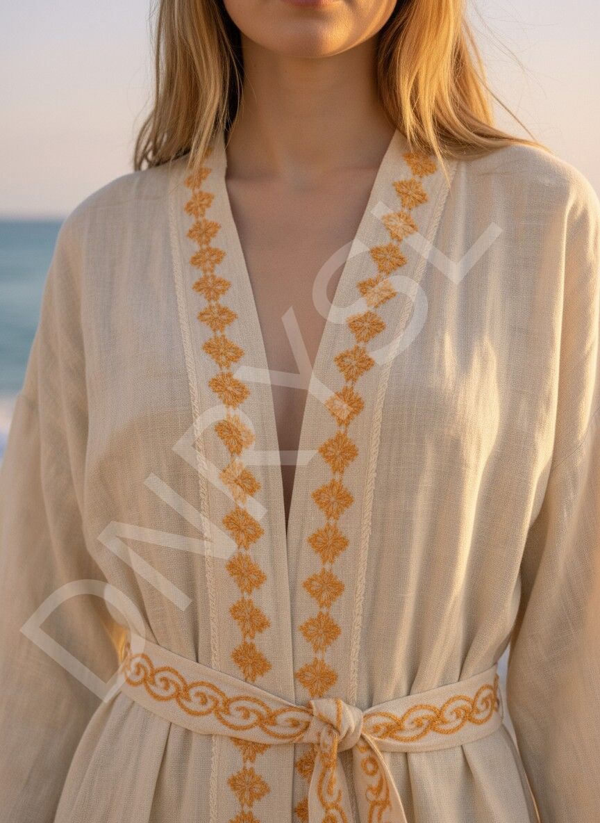 Zerafetin ve Konforun Buluşması: Süzene Nakışlı El Emeği Keten Kaftan