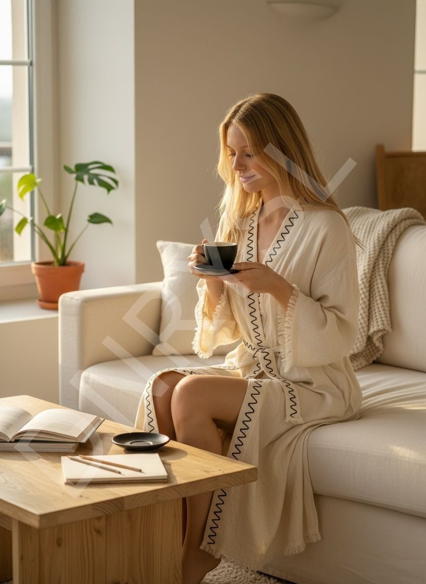 Zerafetin ve Konforun Buluşması: Süzene Nakışlı El Emeği Keten Kaftan