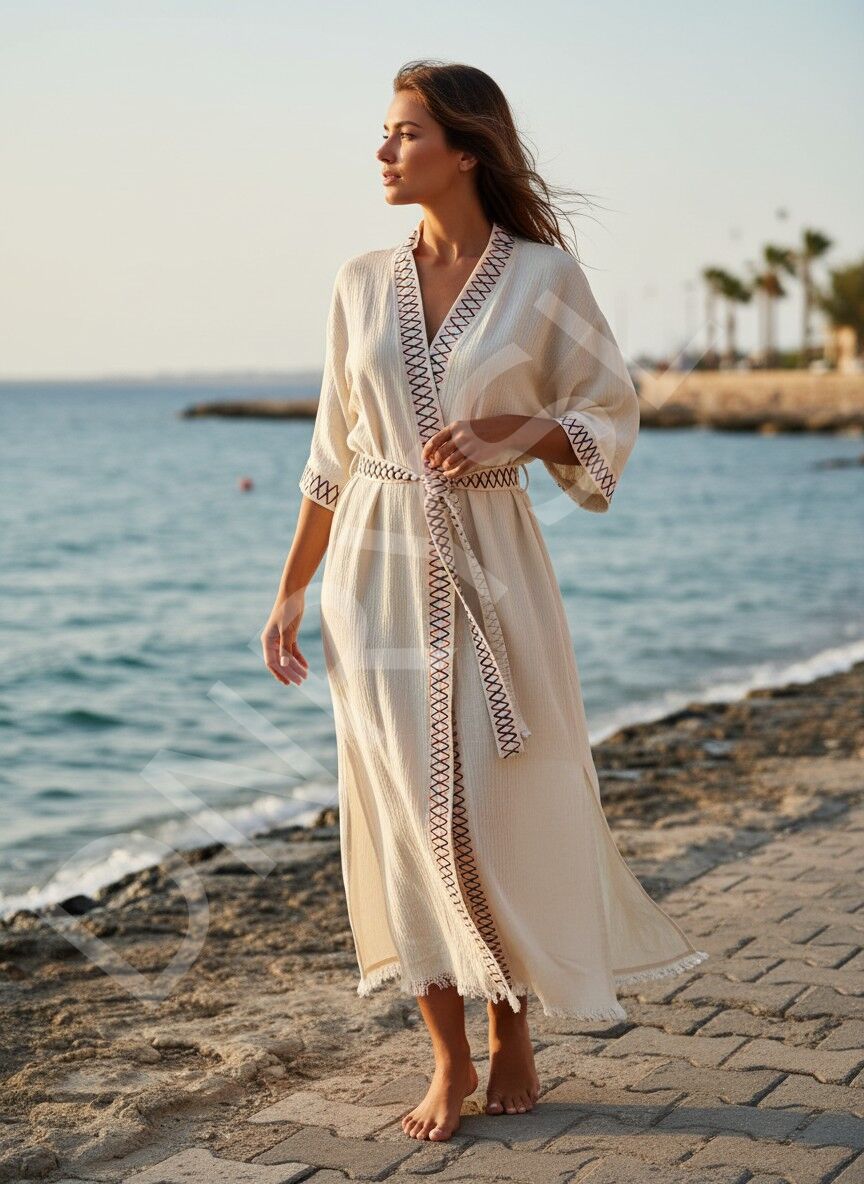 Unutulmaz Detaylar: Her bir nakış ilmeği, bir zanaatkarın elinden özenle çıkmıştır. Bu el emeği kaftan, plajda, tatilde veya günlük kombinlerinizde stilinizi tamamlayacak zamansız bir parçadır.
