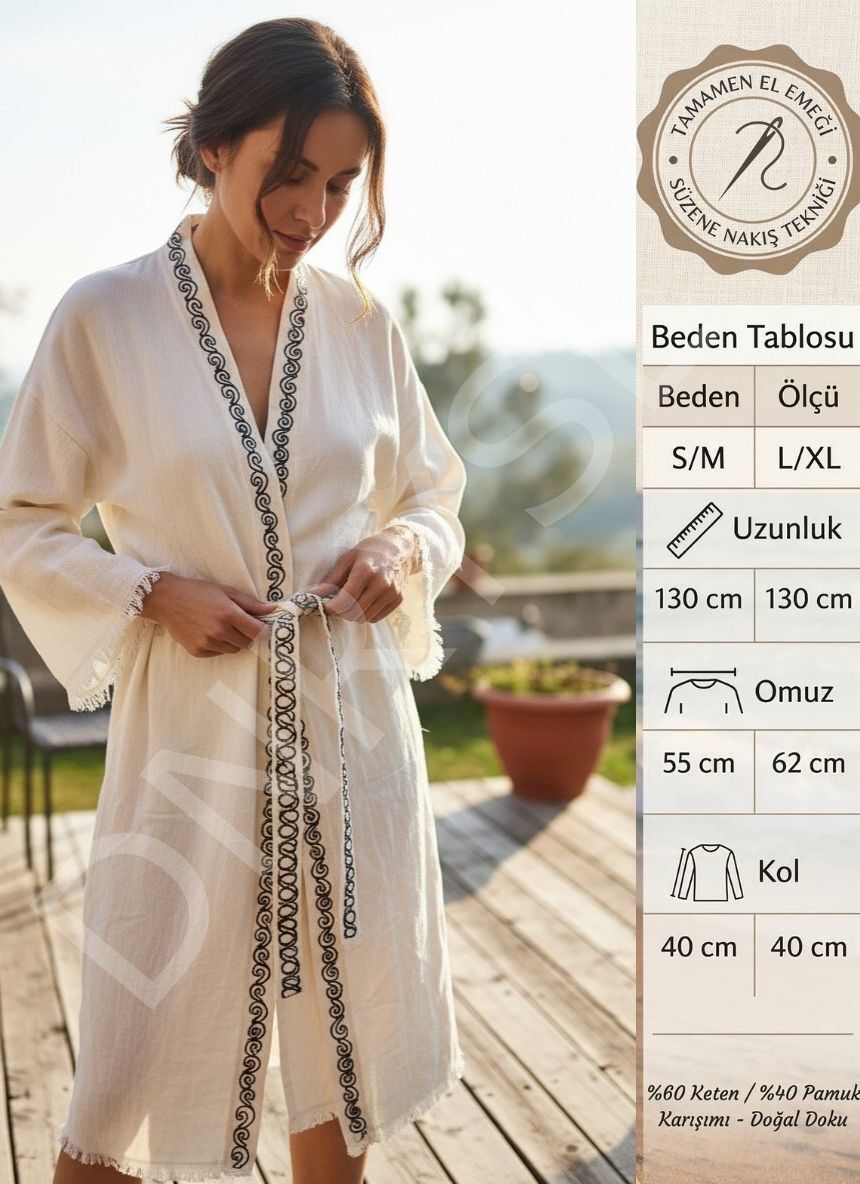 Yazın sıcak günlerinde hem şıklığınızdan ödün vermeyin hem de maksimum konforu yaşayın. Tamamen el emeği ile, geleneksel süzene nakış tekniği kullanılarak hayat bulan bu özel kaftan, zerafet ve doğallığı bir araya getiriyor.