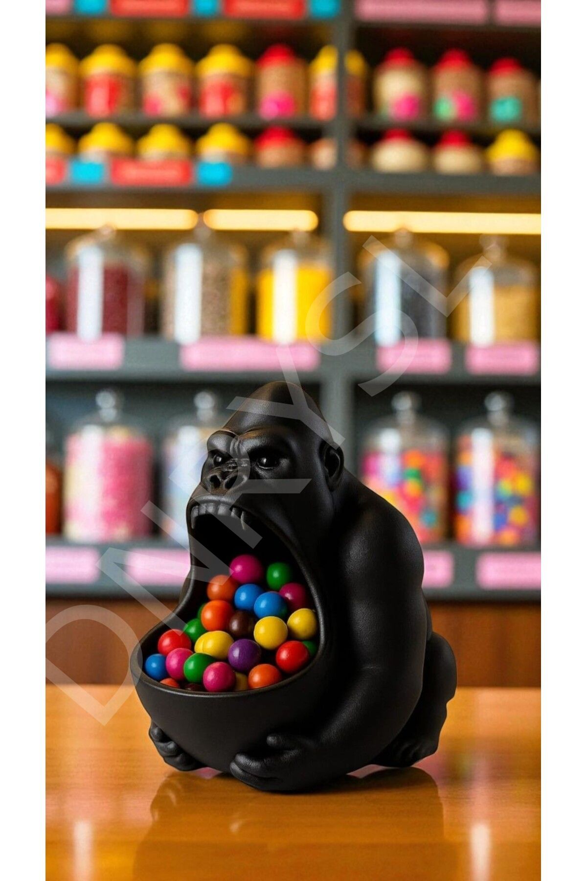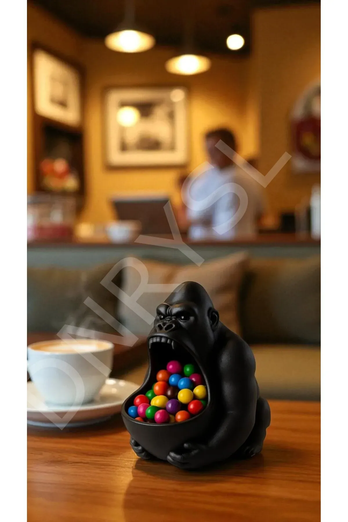 Goril Figürlü Dekoratif Obje, Çok Amaçlı Saklama Kabı, Atıştırmalık, Sabunluk, Biblo Siyah