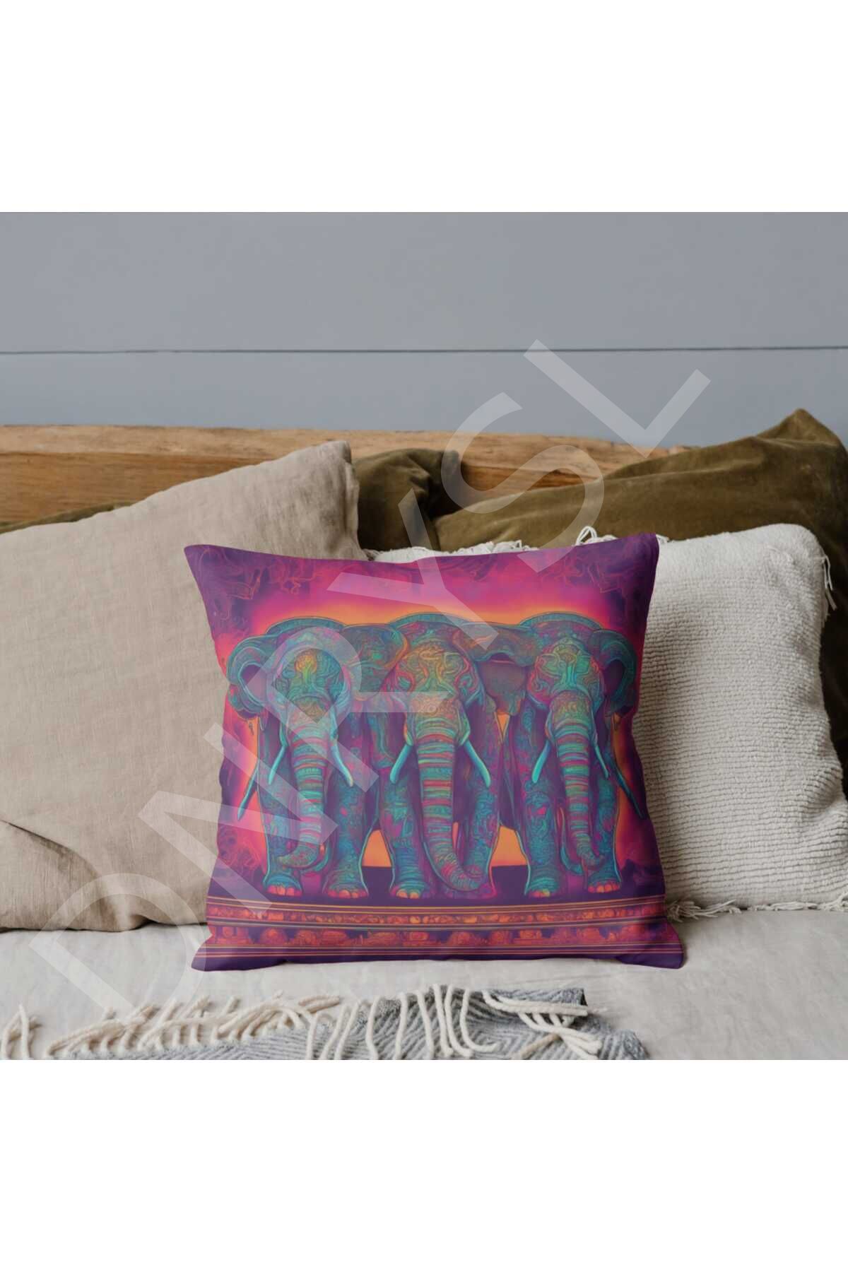 Home Dekoratif Fil Desenli Kırlent Kılıfı 43 X 43 Çok Renkli̇