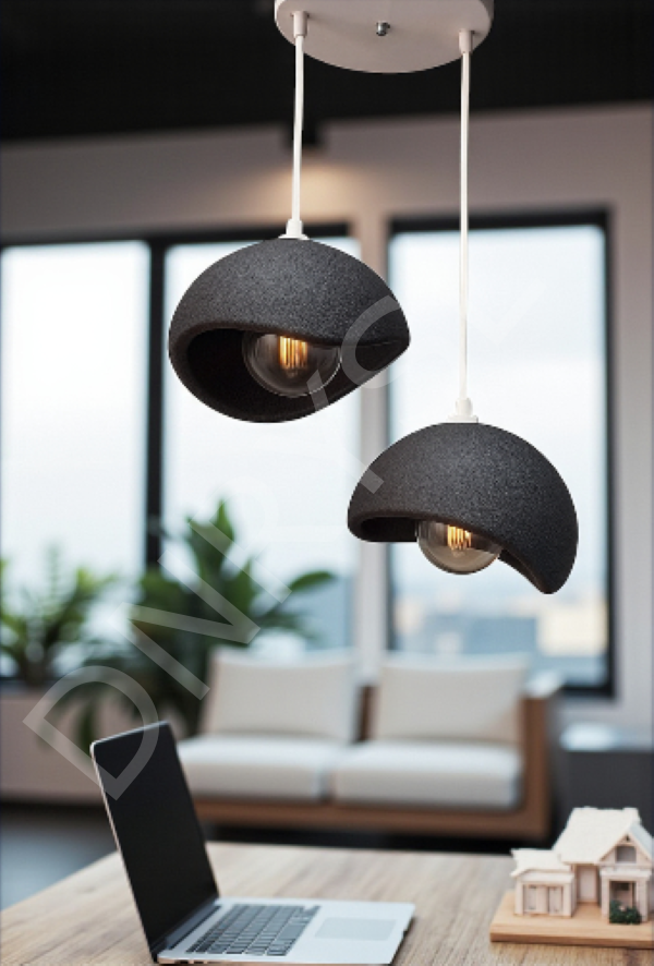 - Bu çift başlı modern sarkıt avize, sade ve şık tasarımıyla dekorasyona sofistike bir dokunuş katıyor.