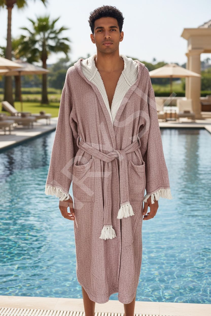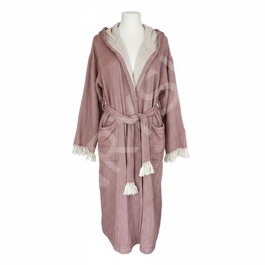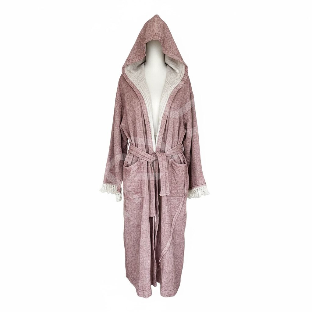 Bohem Kapüşonlu 4 Kat Müslin Organik Unisex Bornoz, Gül Kurusu